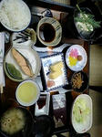 写真は八木邸と今日の旅館の朝食