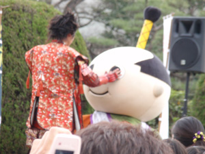 名古屋城のマスコットキャラにイタズラする慶次さんwと名古屋城の桜