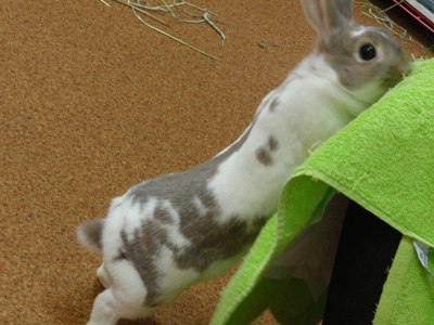他のうさちゃんが皆ゲージに戻された後、桜兎は一人で広いうさぎルームを走り回っていました。